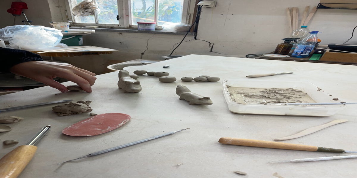 Das Arbeiten mit Ton ist meditativ und genau richtig für Kinder zum entspannen und Kreativ-Sein. Es gibt jahreszeitabhängige Projektideen, die sich gut in 1,5 Stunden Workshop-Zeit umsetzen lassen. Die Kinder erarbeiten ein bestimmtes Projekt pro Workshop. Die Stücke können direkt mit bunten Engoben angemalt werden.